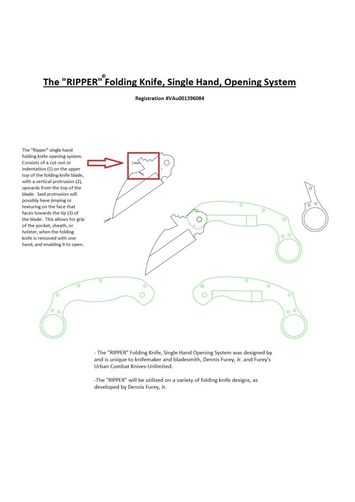 3) #1-7633967661: (Pending Final): Furey’s Urban Combat Knives-Unlimited Website and contained information, designs, etc., copyrighted.