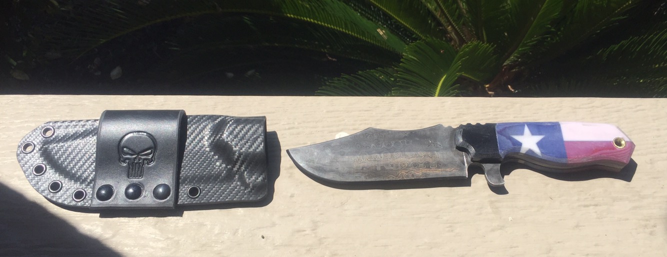 -Alabama Damascus random pattern carbon steel fighter